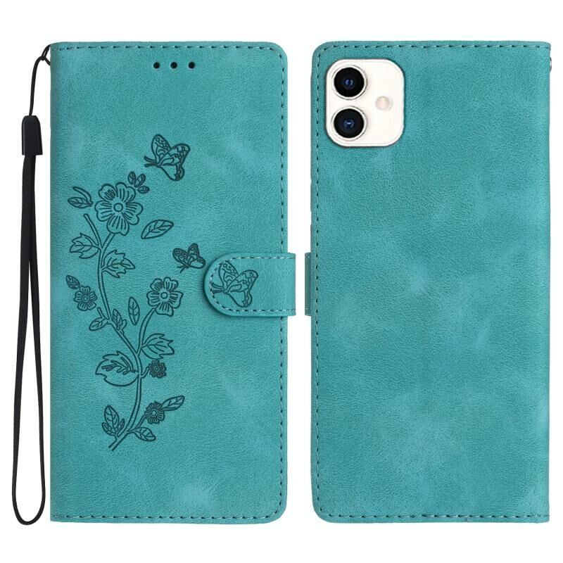 Για Samsung Galaxy A05 λουλούδι πεταλούδα ανάγλυφο μοτίβο δερμάτινη θήκη τηλεφώνου (Γαλάζιο του ουρανού)
