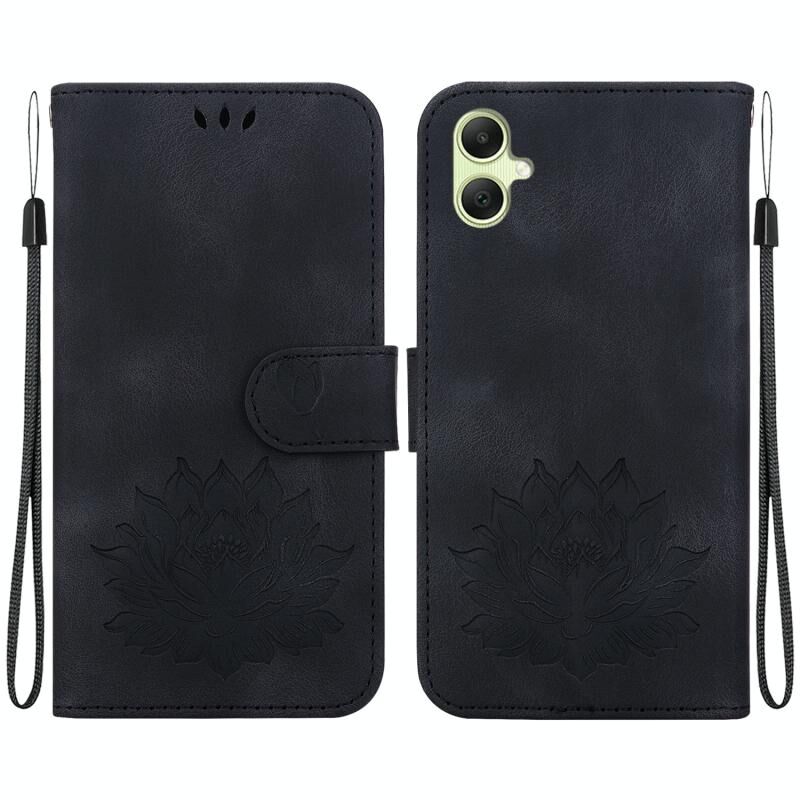 For Samsung Galaxy A05 Lotus Embossed Leather Phone Case(Black)