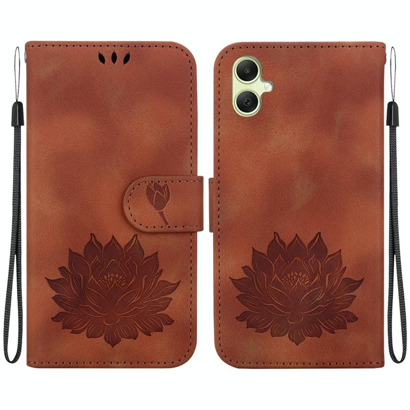 For Samsung Galaxy A05 Lotus Embossed Leather Phone Case(Brown)