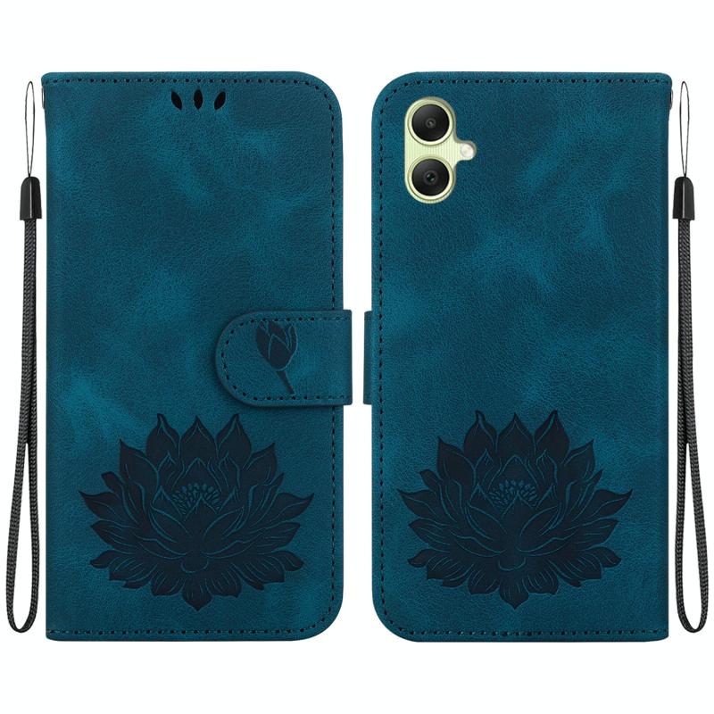 For Samsung Galaxy A05 Lotus Embossed Leather Phone Case(Dark Blue)