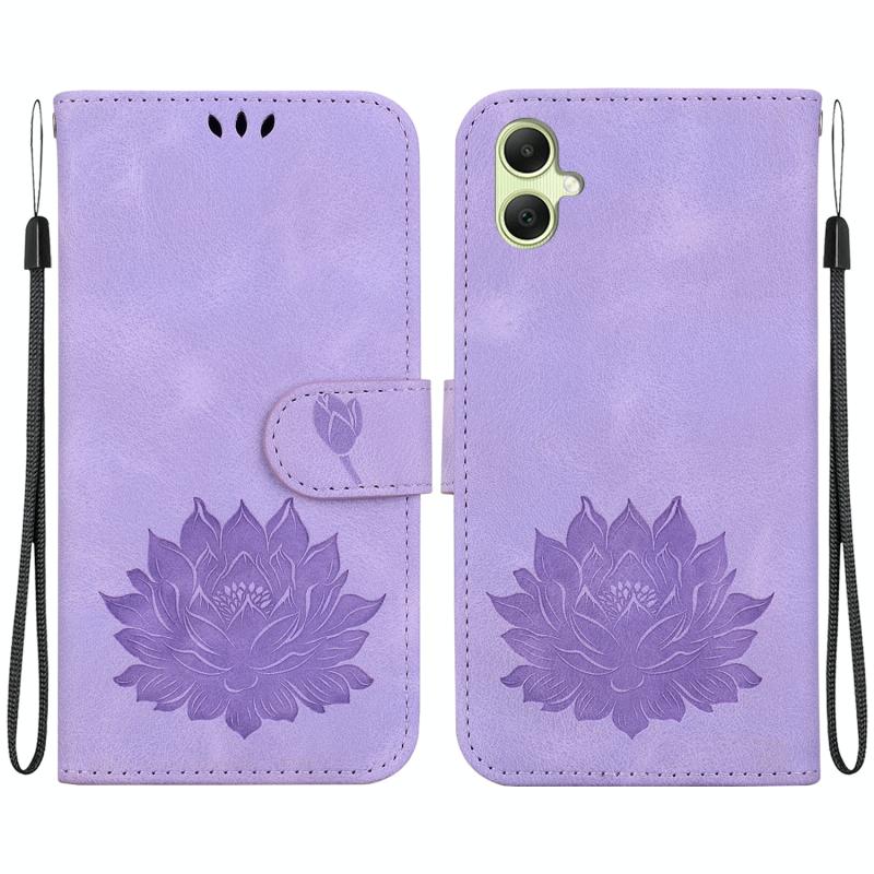 For Samsung Galaxy A05 Lotus Embossed Leather Phone Case(Purple)