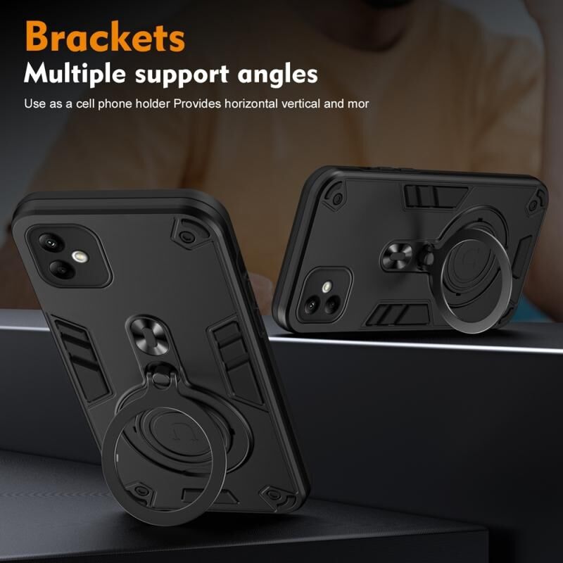 Για Samsung Galaxy A05 Μεταλλικό δαχτυλίδι 360 μοιρών περιστρεφόμενη θήκη τηλεφώνου PC Hybrid TPU (μαύρο)
