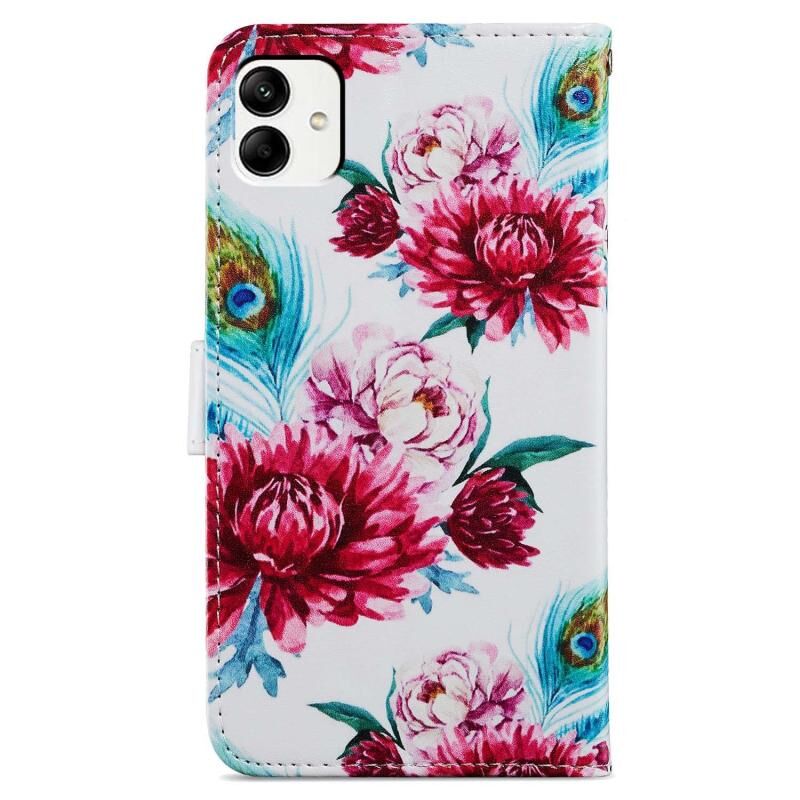 Θήκη τηλεφώνου Samsung Galaxy A05 από δέρμα με οριζόντιο άνοιγμα και ζωγραφιστό σχέδιο (Λουλούδι Παγωνιού)
