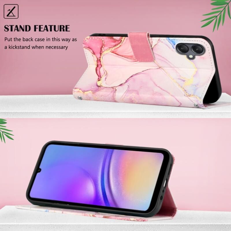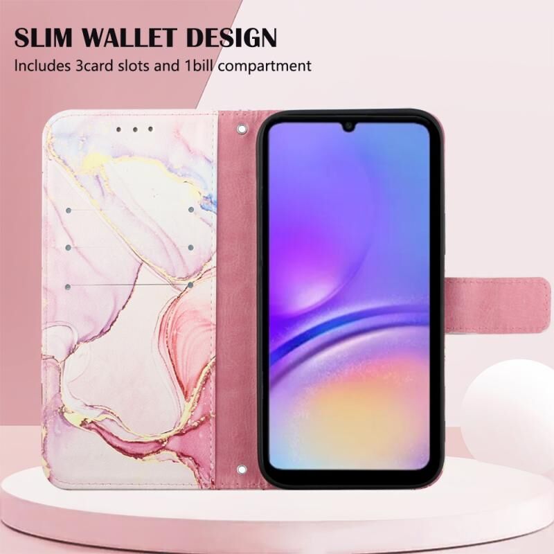 Θήκη τηλεφώνου Samsung Galaxy A05 PT003 με σχέδιο μάρμαρου, δερμάτινη, αναδιπλούμενη (Χρυσό Ρόδι LS005)