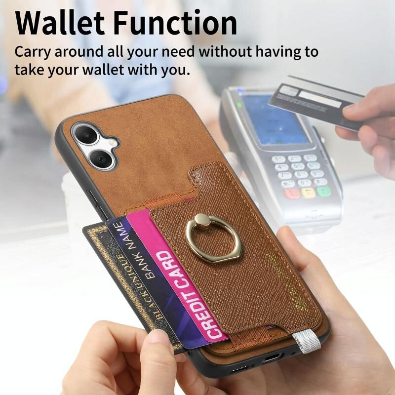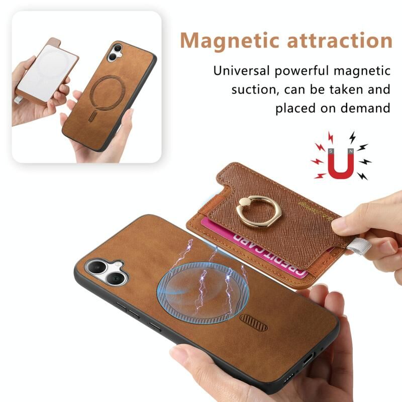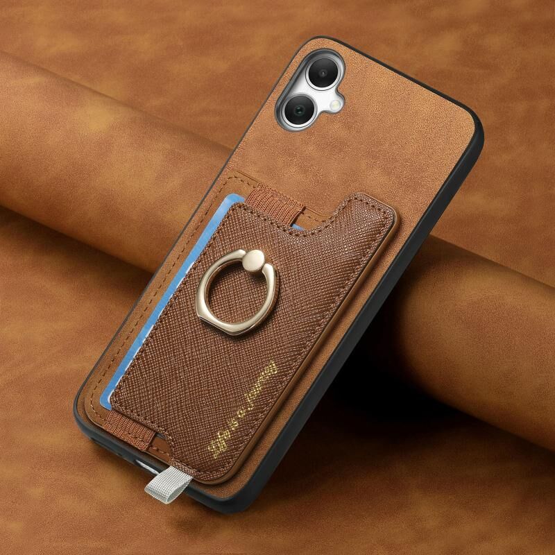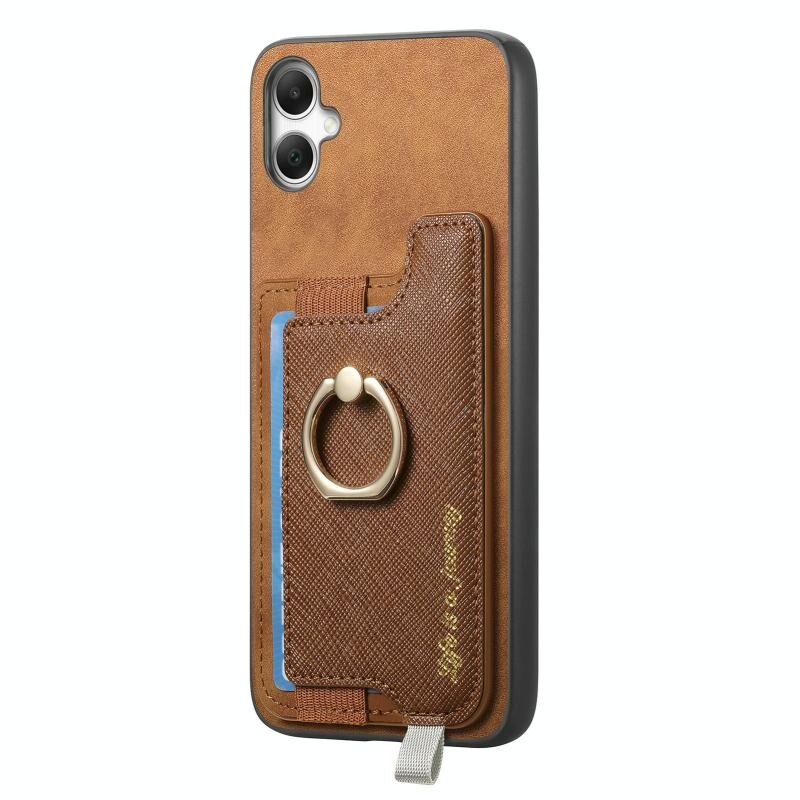 Θήκη κινητού Samsung Galaxy A05 Retro Cross από δέρμα με δακτύλιο και οριζόντια θήκη καρτών, συμβατή με MagSafe (Καφέ)