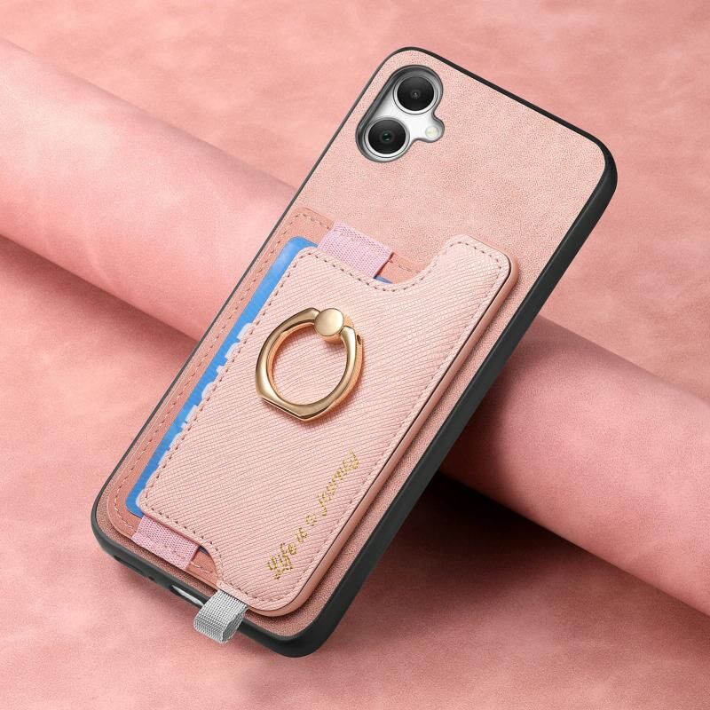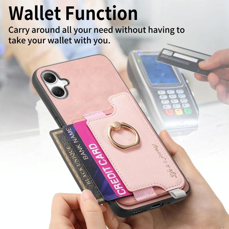Θήκη κινητού Samsung Galaxy A05 Retro Cross από δέρμα με δακτύλιο και οριζόντια θήκη καρτών, συμβατή με MagSafe (ρόζ)