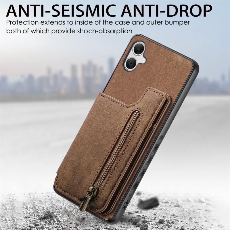 Για Samsung Galaxy A05 Ρετρό δέρμα φερμουάρ πορτοφόλι πίσω θήκη τηλεφώνου (καφέ)