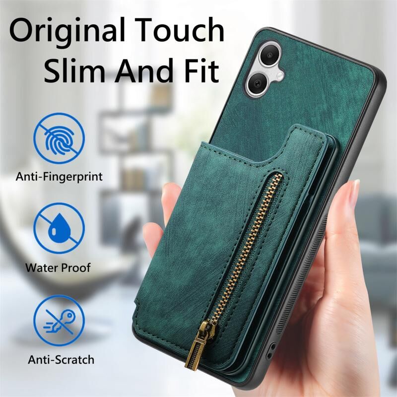 Για Samsung Galaxy A05 Ρετρό δέρμα φερμουάρ πορτοφόλι πίσω θήκη τηλεφώνου (πράσινο)