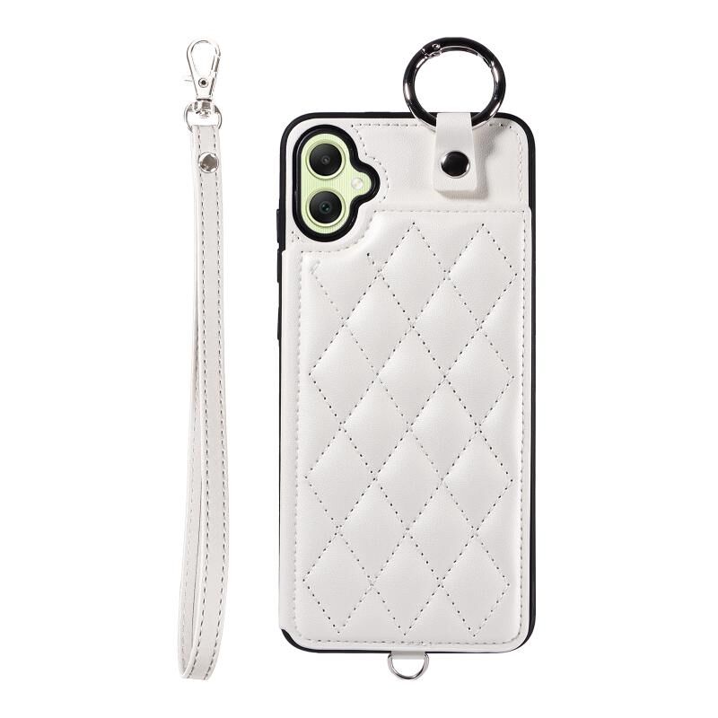 Για Samsung Galaxy A05 Rhombic υφή κάρτα τσάντα υπόθεση τηλεφώνου με σύντομο κορδόνι (Λευκό)