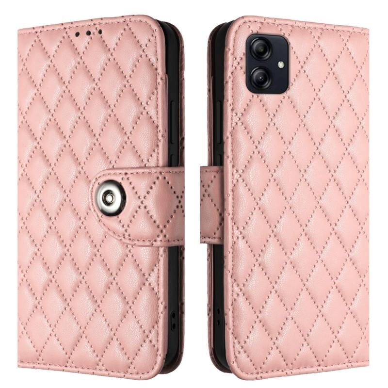 Για Samsung Galaxy A05 Rhombic υφή Flip δερμάτινη θήκη τηλεφώνου με κορδόνι (ροζ κοραλλί)
