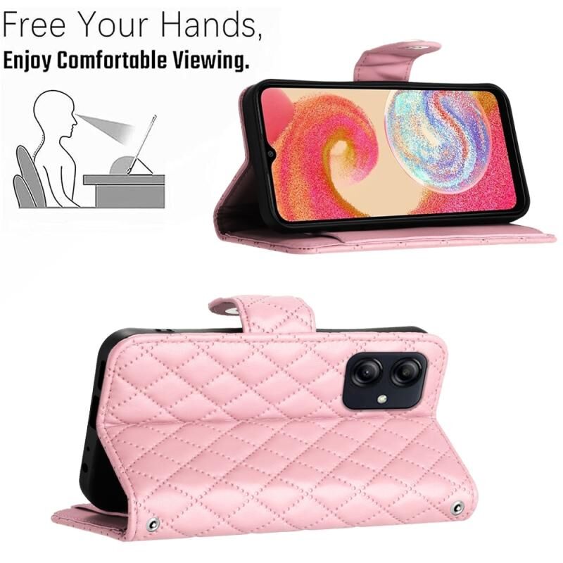 Για Samsung Galaxy A05 Rhombic Texture Flip δερμάτινη θήκη τηλεφώνου με κορδόνι (ροζ)