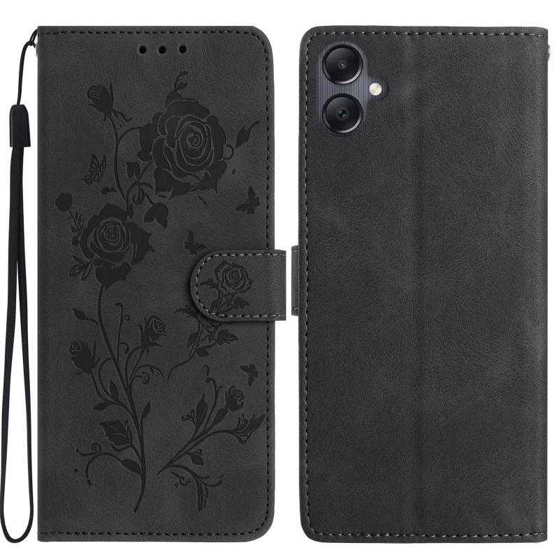 For Samsung Galaxy A05 Rose Flower Embossing Pattern Leather Phone Case(Black)