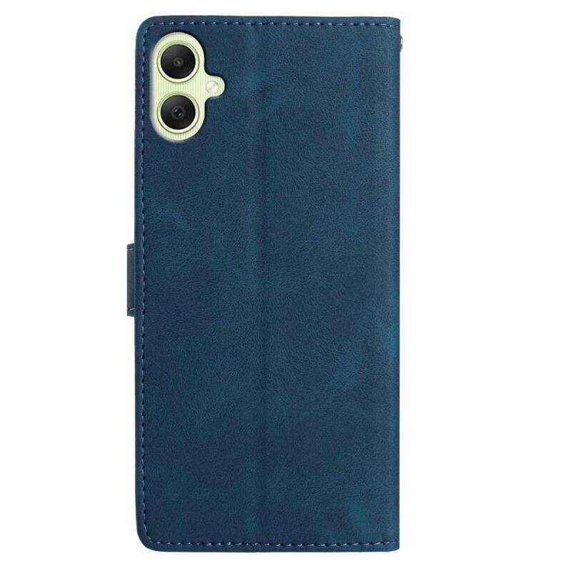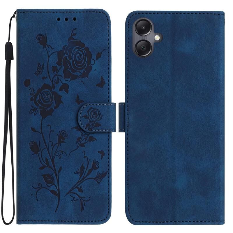 Θήκη τηλεφώνου δερμάτινη με ανάγλυφο σχέδιο ροζ άνθους για Samsung Galaxy A05 (Σκούρο μπλε)