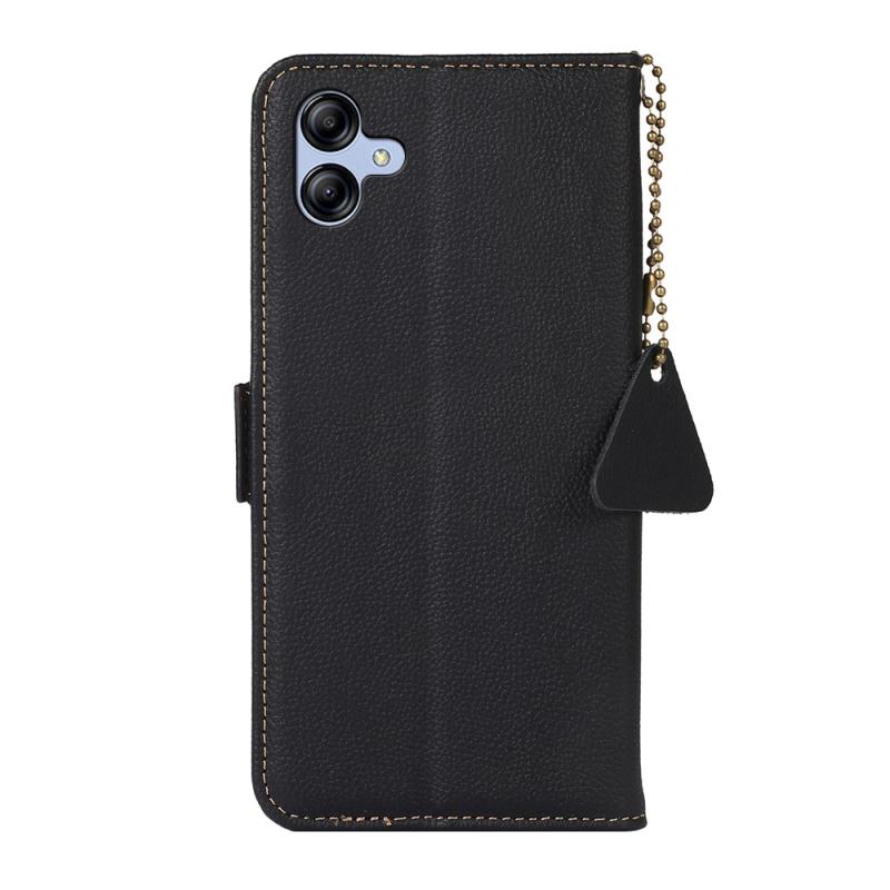 For Samsung Galaxy A05 Side-Magnetic TJ Genuine Leather RFID Phone Case(Black)