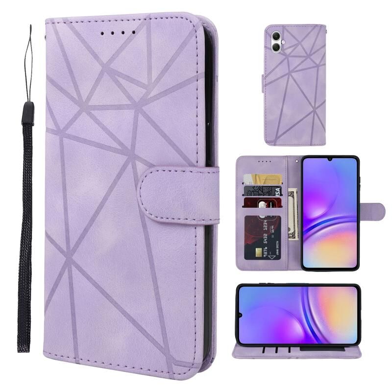 Θήκη τηλεφώνου Samsung Galaxy A05 με δερμάτινη υφή, γεωμετρικά σχέδια (Μαύρο)