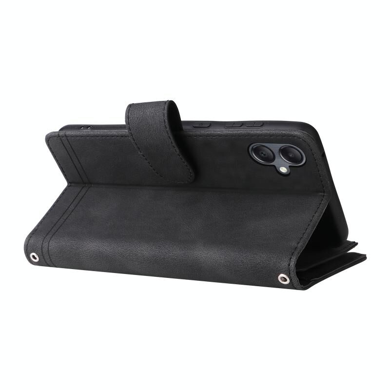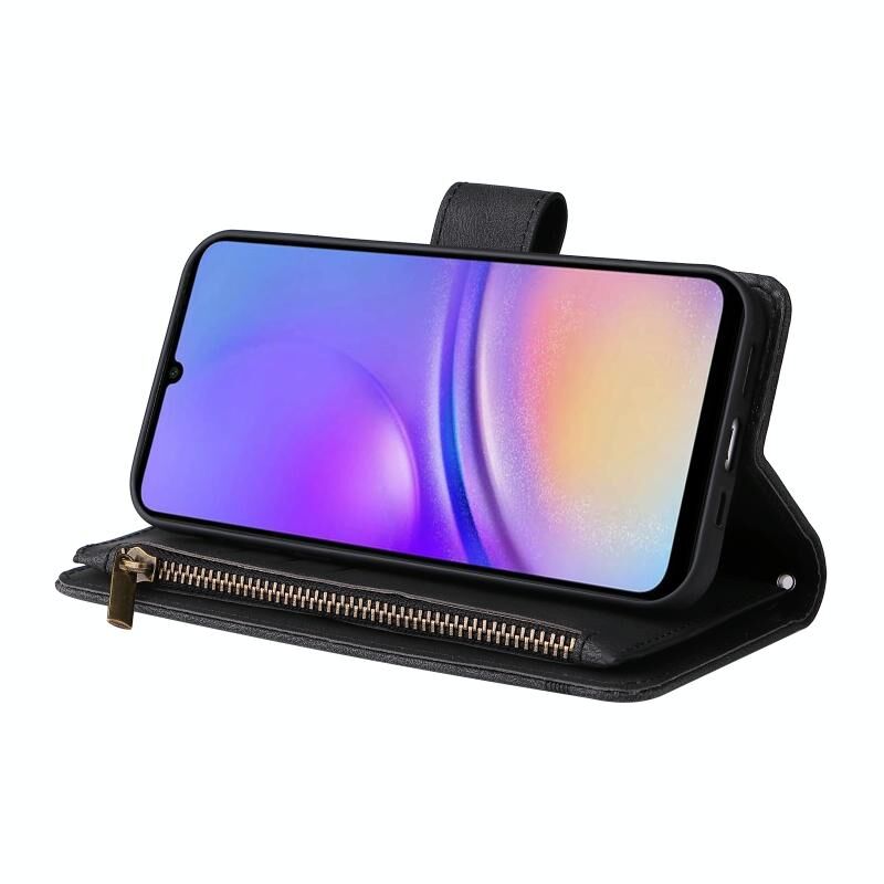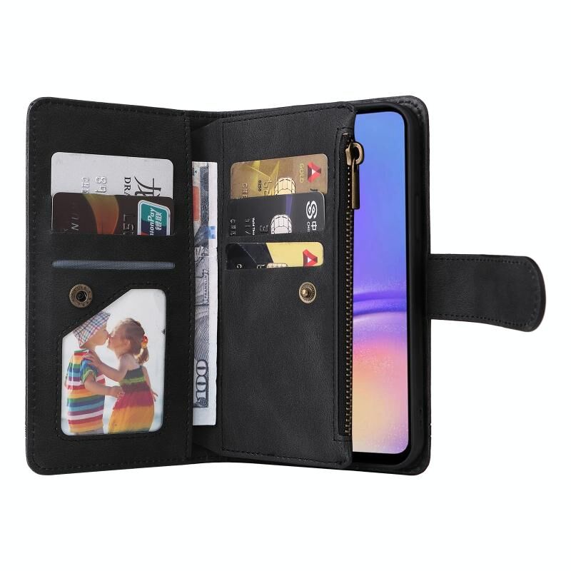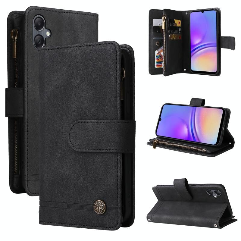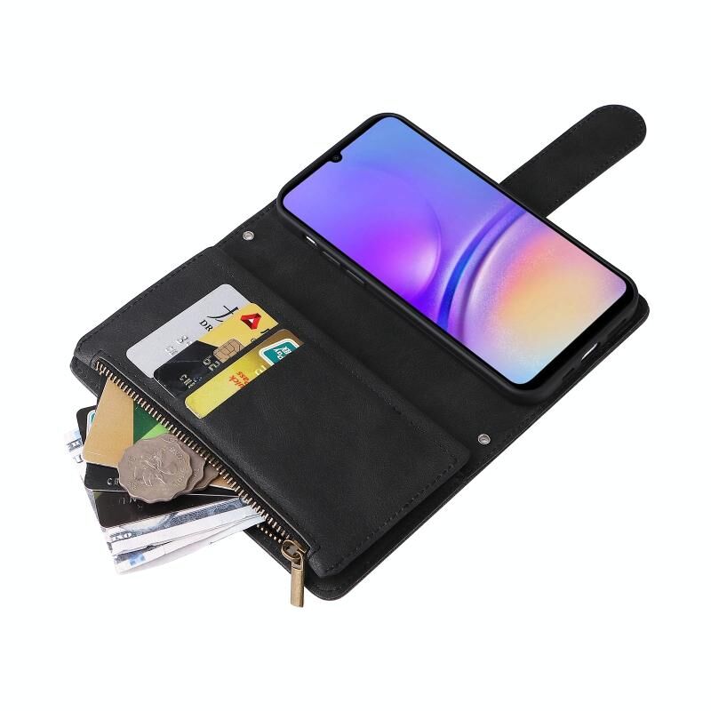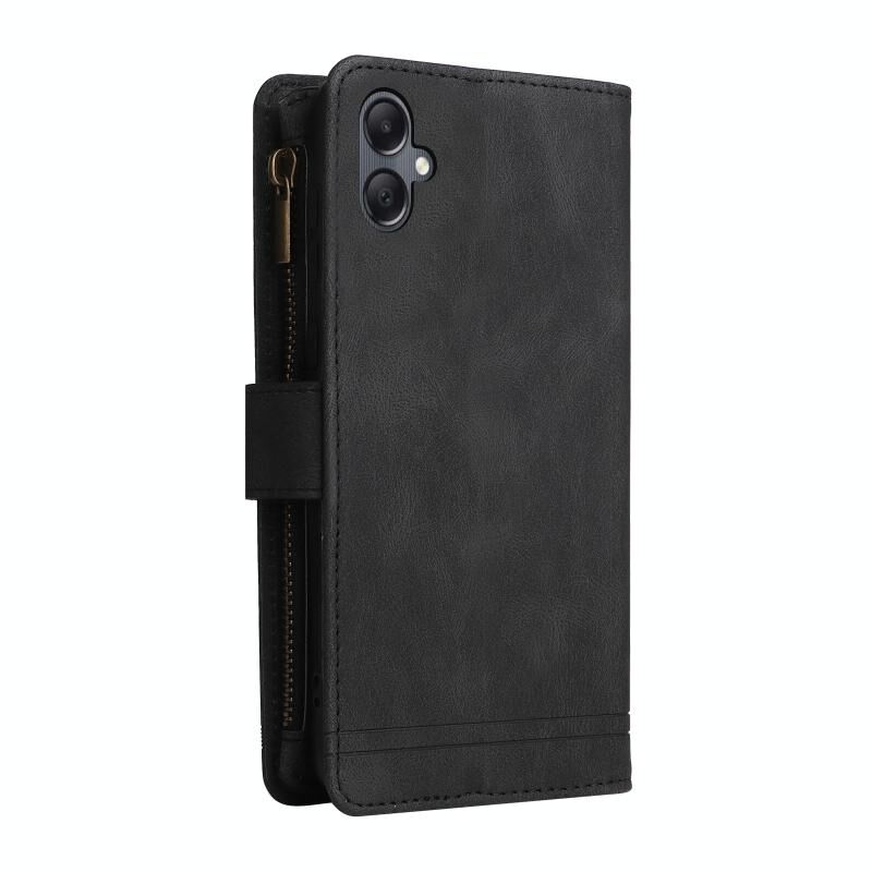 Για το Samsung Galaxy A05 δέρμα αίσθηση Multi-Card πορτοφόλι φερμουάρ δερμάτινη θήκη τηλεφώνου (μαύρο)