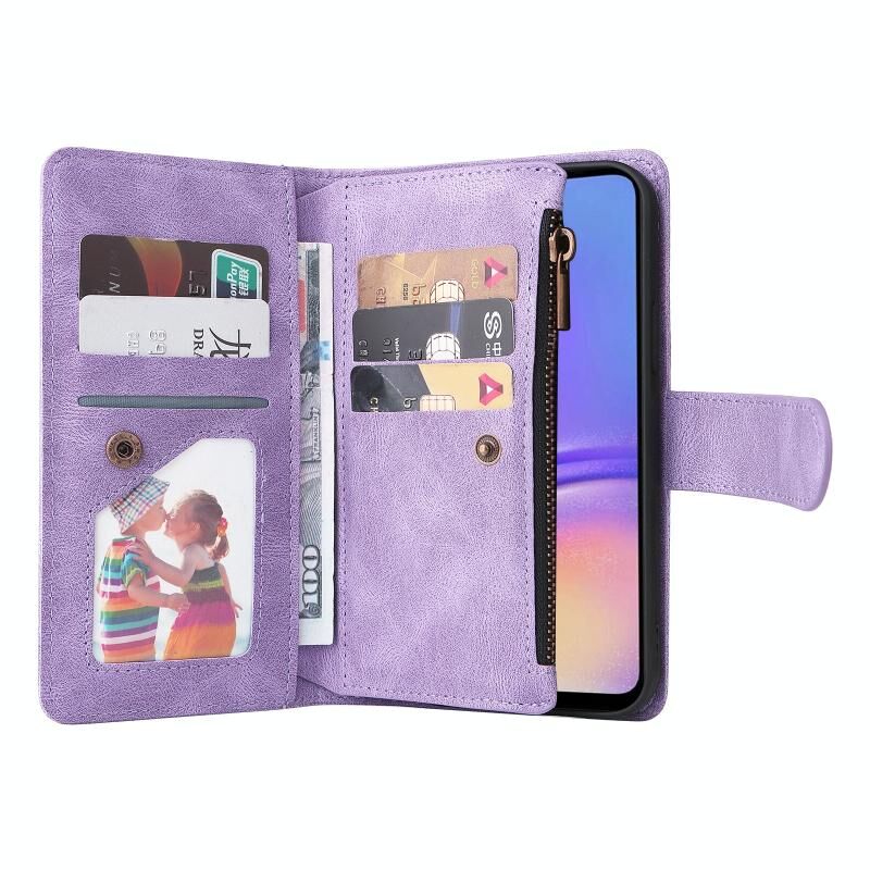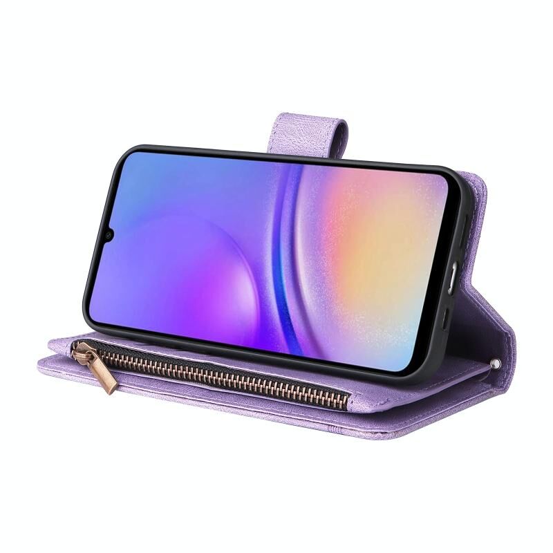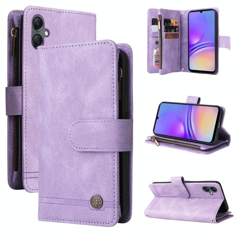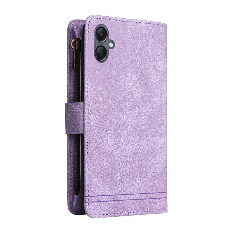 Για το Samsung Galaxy A05 δέρμα αίσθηση Multi-Card πορτοφόλι φερμουάρ δερμάτινη θήκη τηλεφώνου (Μωβ)
