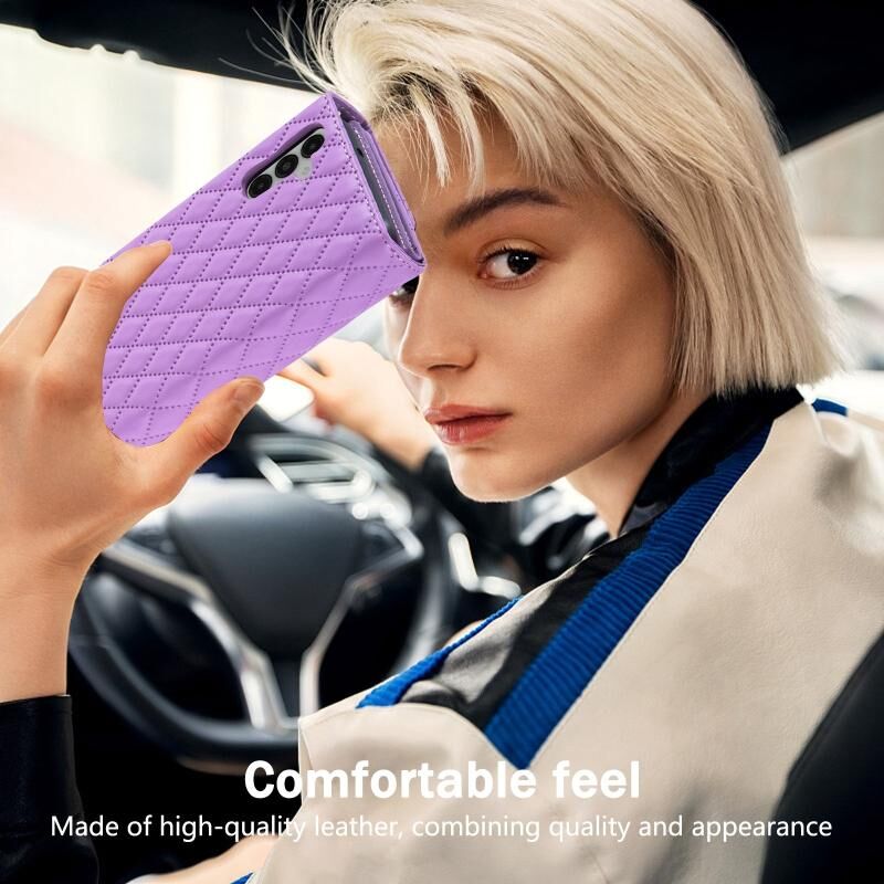 Για Samsung Galaxy A05 φερμουάρ πορτοφόλι πολλαπλών καρτών ρομβοειδής δερμάτινη θήκη τηλεφώνου (μωβ)