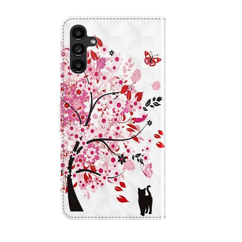 Θήκη τηλεφώνου Samsung Galaxy A05s με δερμάτινη επιφάνεια και σχέδιο 3D (Γάτα κάτω από το δέντρο)