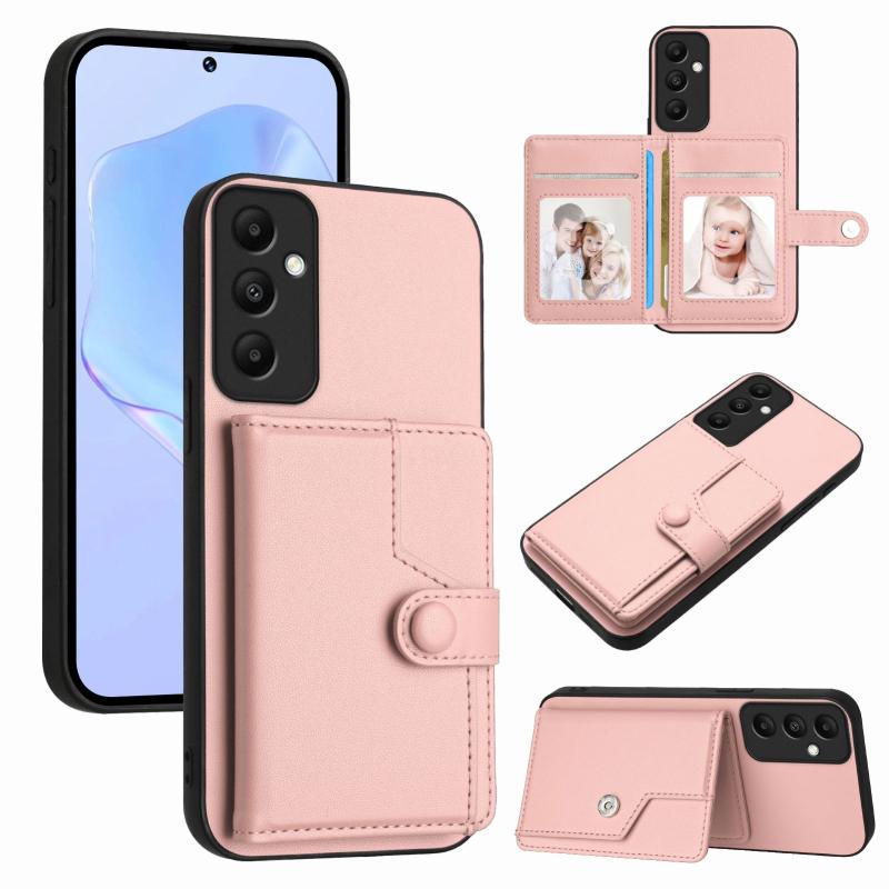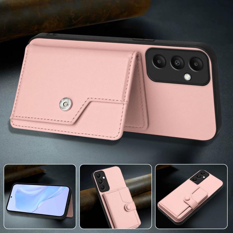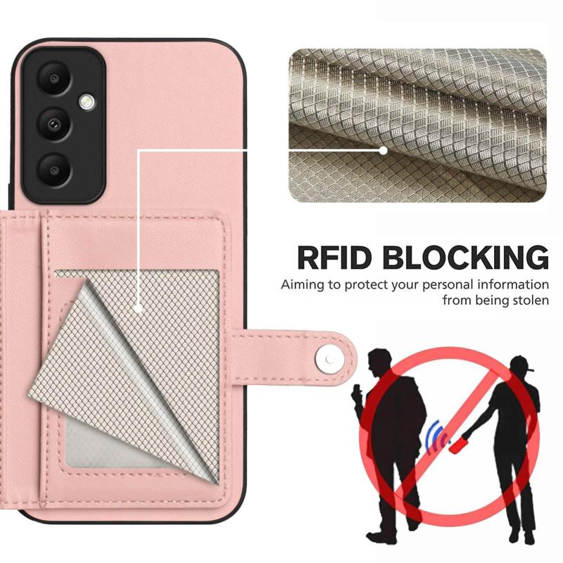 For Samsung Galaxy A05s 4G Button Card Bag RFID Anti-theft Phone Case(Pink)