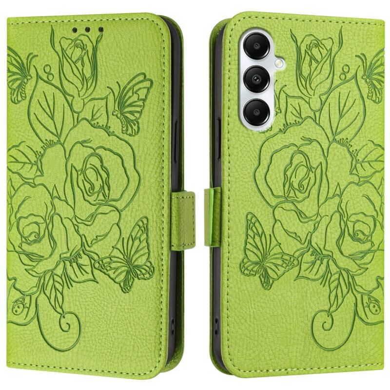 Για Samsung Galaxy A05s 4G Global ανάγλυφο Rose RFID Anti-theft Δερμάτινη θήκη τηλεφώνου (πράσινο)