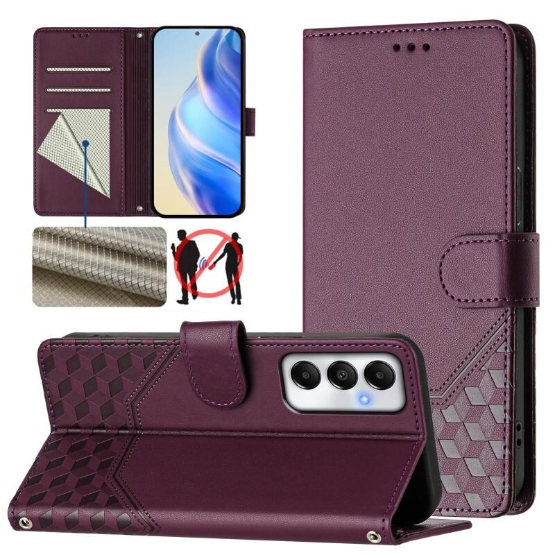 Για Samsung Galaxy A05s 4G Global Honeycomb ανάγλυφη RFID δερμάτινη θήκη τηλεφώνου (Violet)
