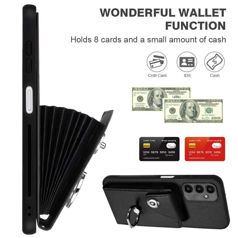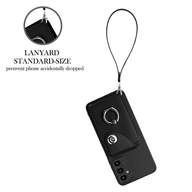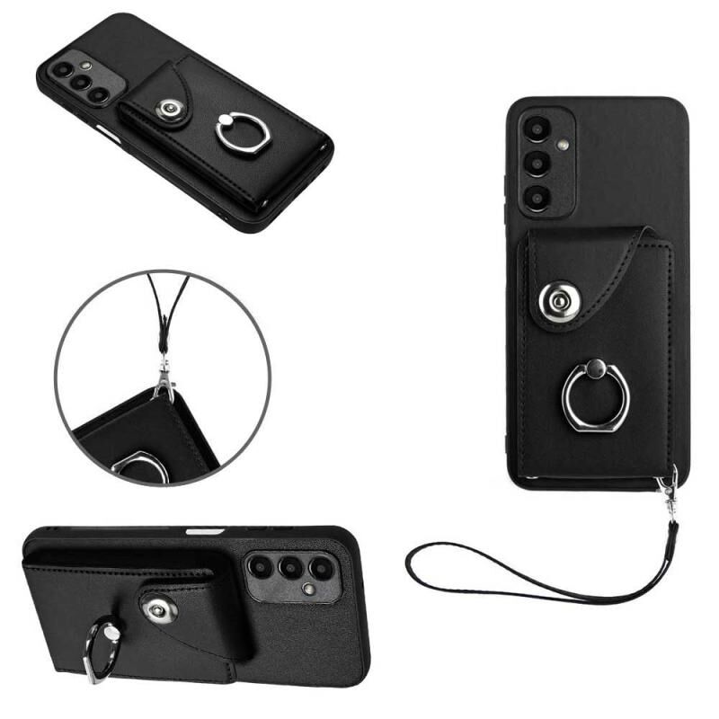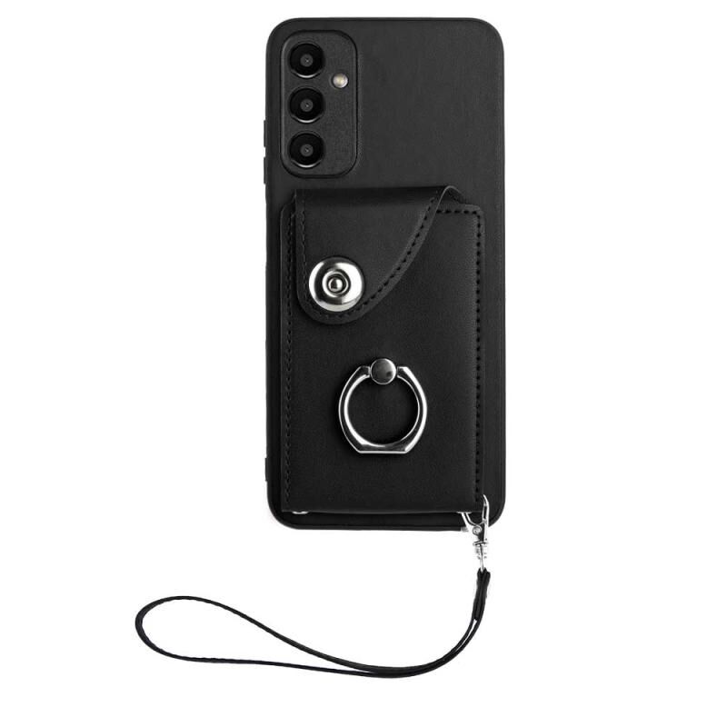 Για Samsung Galaxy A05s 4G Global Organ Card Bag τσάντα δαχτυλίδι κάτοχος PU υπόθεση τηλεφώνου με κορδόνι (Μαύρο)