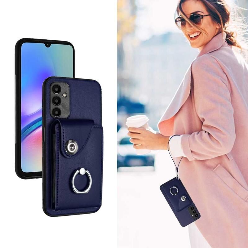 Για Samsung Galaxy A05s 4G Global Organ Card Bag τσάντα δαχτυλίδι κάτοχος PU υπόθεση τηλεφώνου με κορδόνι (Μπλε)