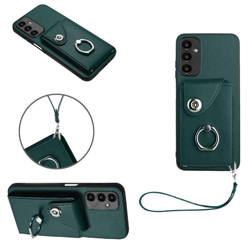 Για Samsung Galaxy A05s 4G Global Organ Card Bag τσάντα δαχτυλίδι κάτοχος PU υπόθεση τηλεφώνου με κορδόνι (πράσινο)