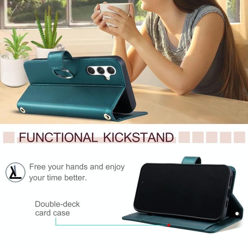 Για Samsung Galaxy A05s 4G Παγκόσμια δαχτυλίδι πόρπη Rhombic δέρμα υπόθεση τηλεφώνου (πράσινο)
