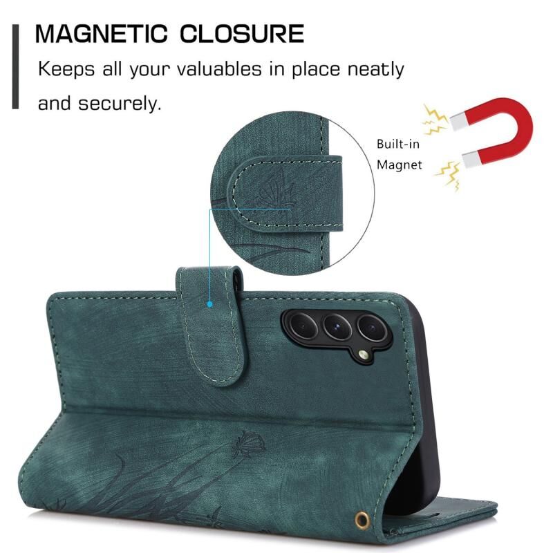 Θήκη τηλεφώνου δερμάτινη ανάγλυφη με σχέδιο ορχιδέας πεταλούδας για Samsung Galaxy A05s 4G (Μαύρο)