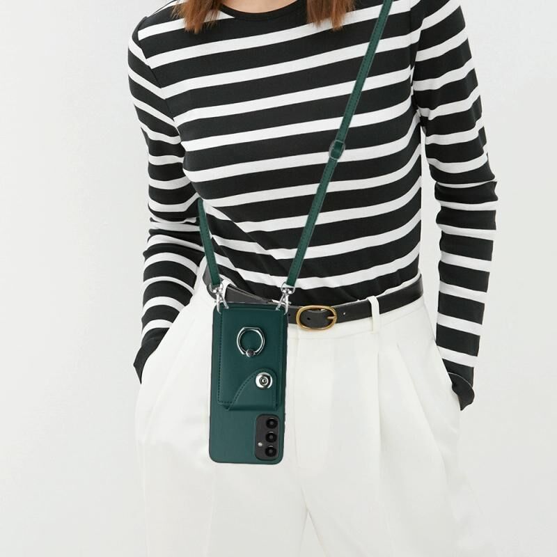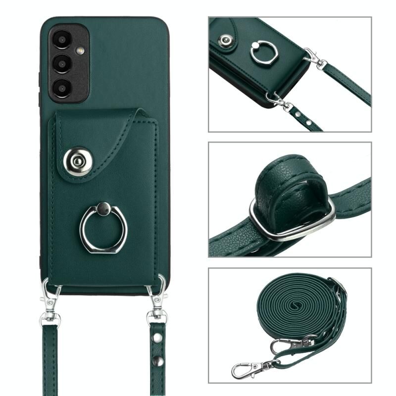 Για Samsung Galaxy A05s 4G Οργανική κάρτα τσάντα τσάντα δαχτυλίδι κάτοχος υπόθεση τηλεφώνου με μακρύ κορδόνι (πράσινο)