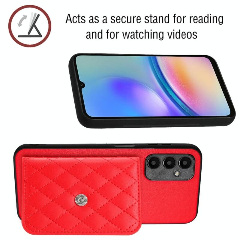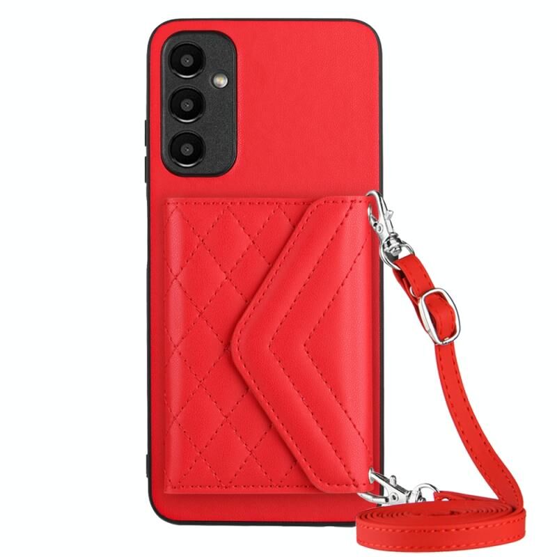 Για Samsung Galaxy A05s 4G Rhombic υφή κάρτα τσάντα RFID υπόθεση τηλεφώνου με μακρύ κορδόνι(Κόκκινο)