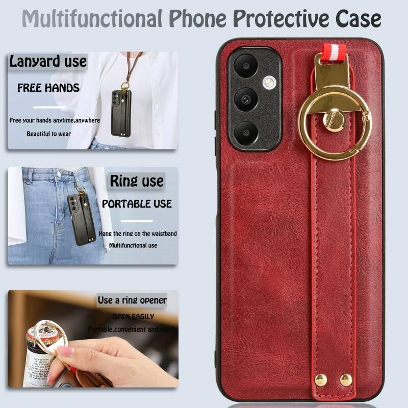Για Samsung Galaxy A05s 4G Wristband δέρμα πίσω θήκη τηλεφώνου (Κόκκινο)