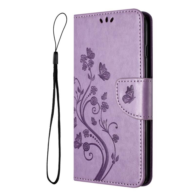 Για Samsung Galaxy A05s πεταλούδα λουλούδι μοτίβο Flip δέρμα τηλέφωνο υπόθεση (Light Purple)