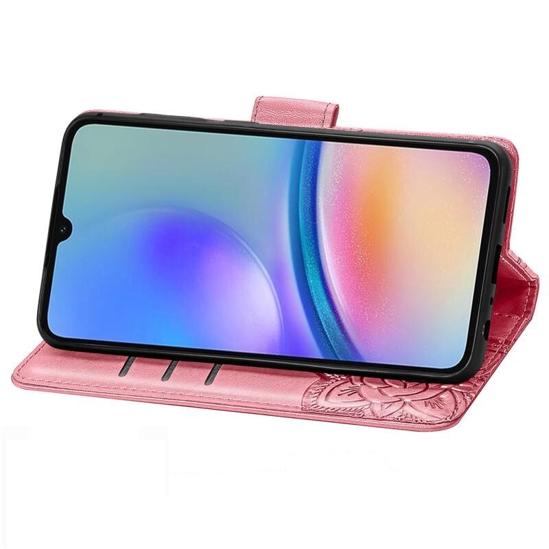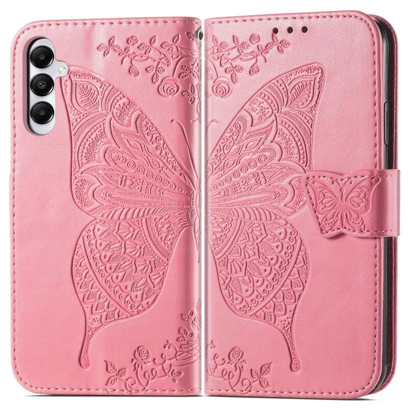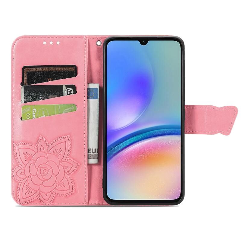 Για Samsung Galaxy A05s πεταλούδα αγάπη λουλούδι ανάγλυφο δερμάτινη θήκη τηλεφώνου (ροζ)