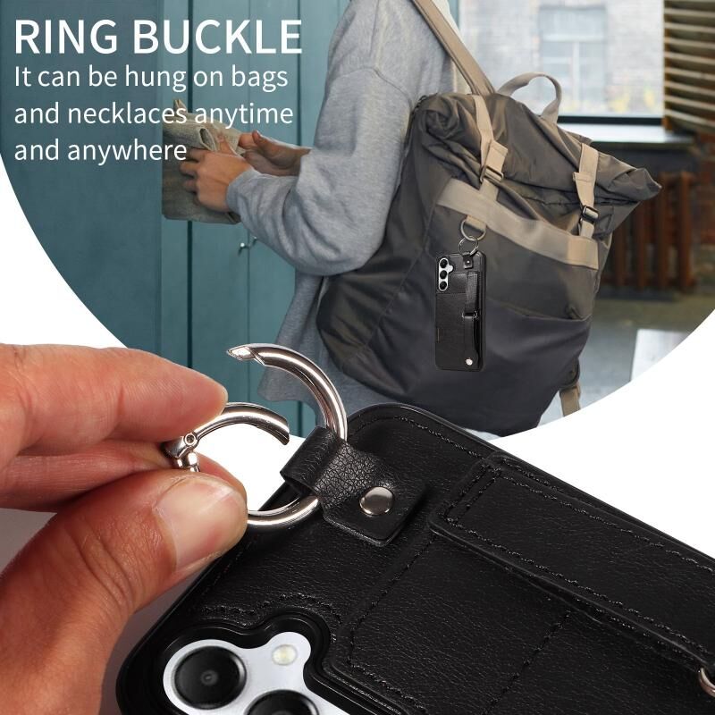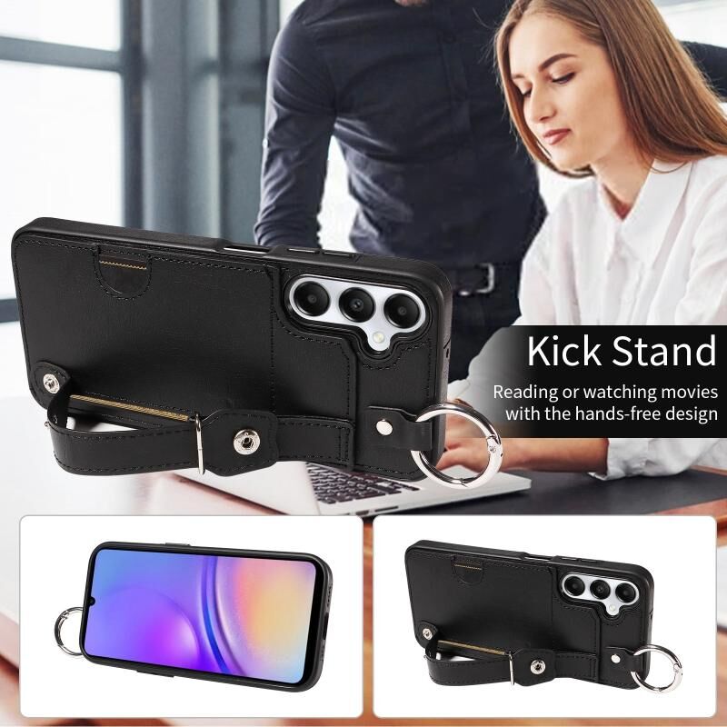 Για Samsung Galaxy A05s Calf υφή καρπού κάρτα Slot Ring υπόθεση τηλεφώνου (μαύρο)
