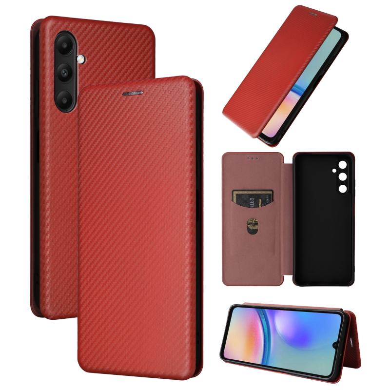 Θήκη τηλεφώνου Samsung Galaxy A05s από δέρμα με υφή ανθρακονημάτων (Καφέ)