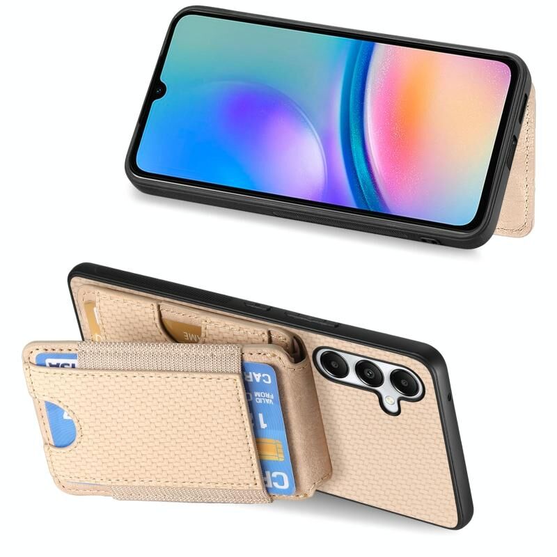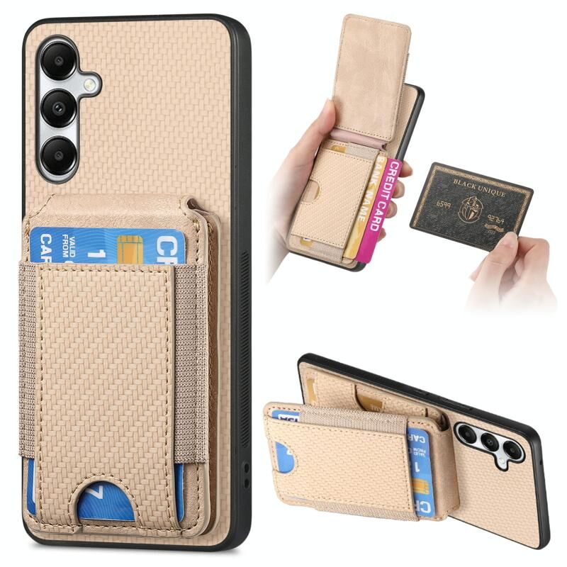 Για Samsung Galaxy A05s Carbon Fiber Κάθετη Flip Wallet Stand υπόθεση τηλεφώνου (Χακί)