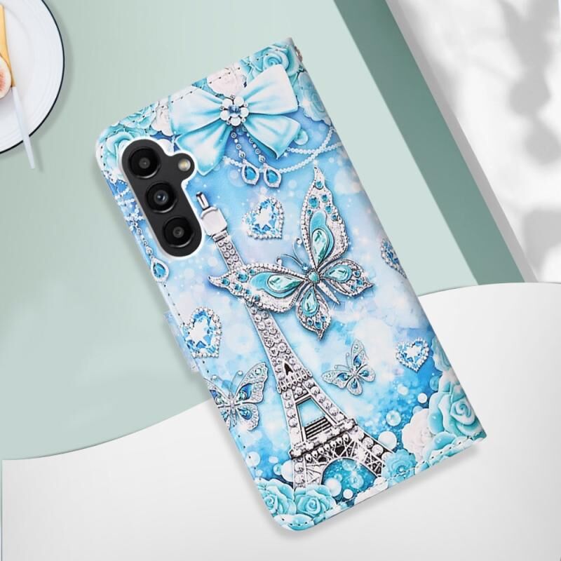 Θήκη τηλεφώνου Samsung Galaxy A05s από δέρμα με απλή ύφανση, με πολύχρωμο σχέδιο (Πύργος Πεταλούδας). (Κόκκινο)