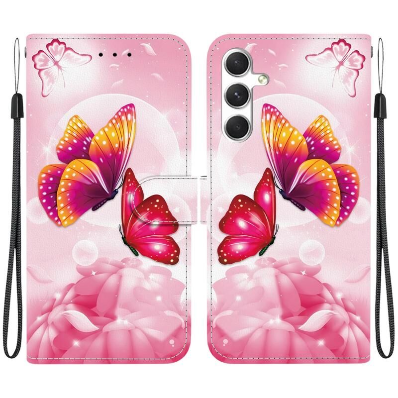 Θήκη κινητού Samsung Galaxy A05s με κρυσταλλική υφή, πολύχρωμο σχέδιο δέρματος (Χρυσά φτερά πεταλούδας)