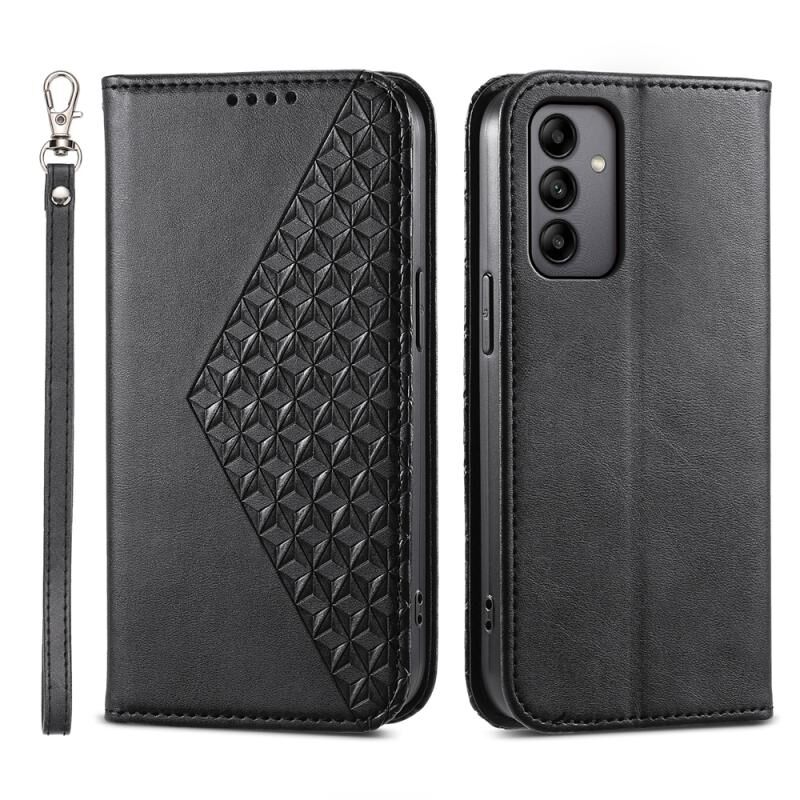 Για Samsung Galaxy A05s Cubic Grid Calf Texture μαγνητική δερμάτινη θήκη τηλεφώνου (μαύρο)