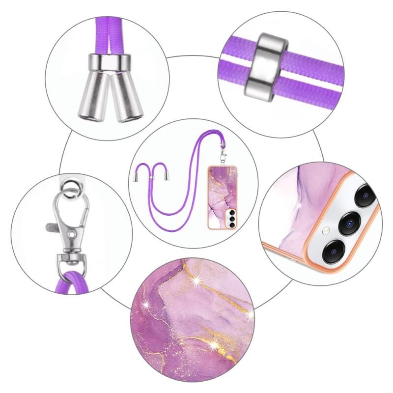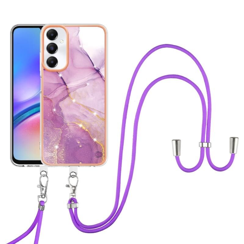 Θήκη τηλεφώνου Samsung Galaxy A05s με επιμετάλλωση, σχέδιο μάρμαρου, διπλής όψης IMD με κορδόνι (Μωβ 001)