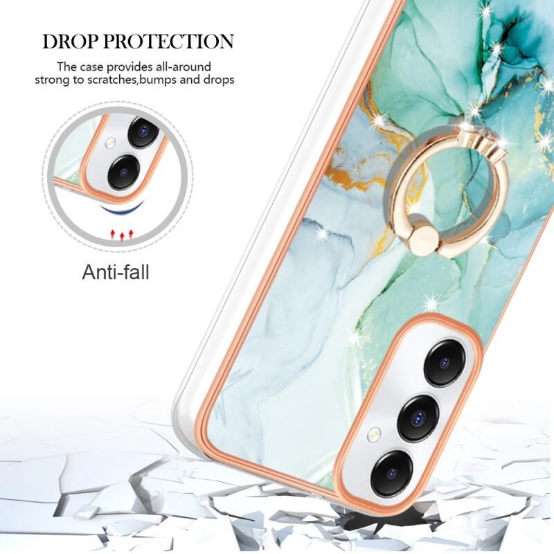 Θήκη κινητού τηλεφώνου Samsung Galaxy A05s με Ηλεκτρολυτική Επικάλυψη, σχέδιο Μάρμαρου IMD, από TPU με Δακτύλιο Στήριξης (Πράσινο 003)