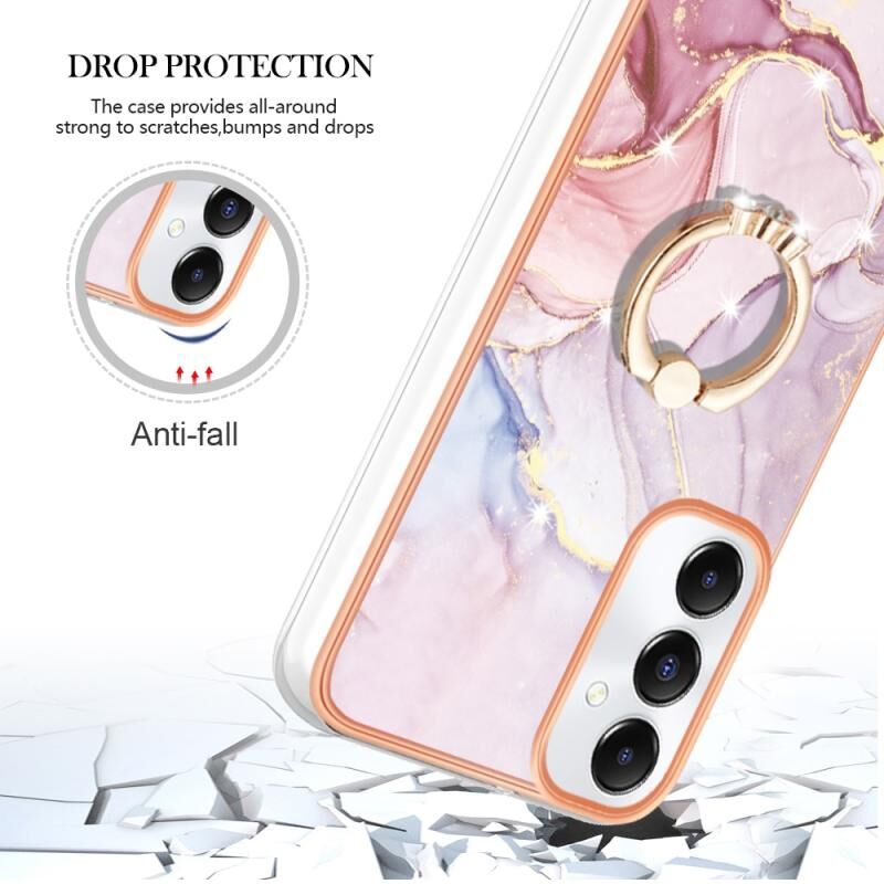 Θήκη κινητού τηλεφώνου Samsung Galaxy A05s με Ηλεκτρολυτική Επικάλυψη, σχέδιο Μάρμαρου IMD, από TPU με Δακτύλιο Στήριξης (Ροζ Χρυσός 005)