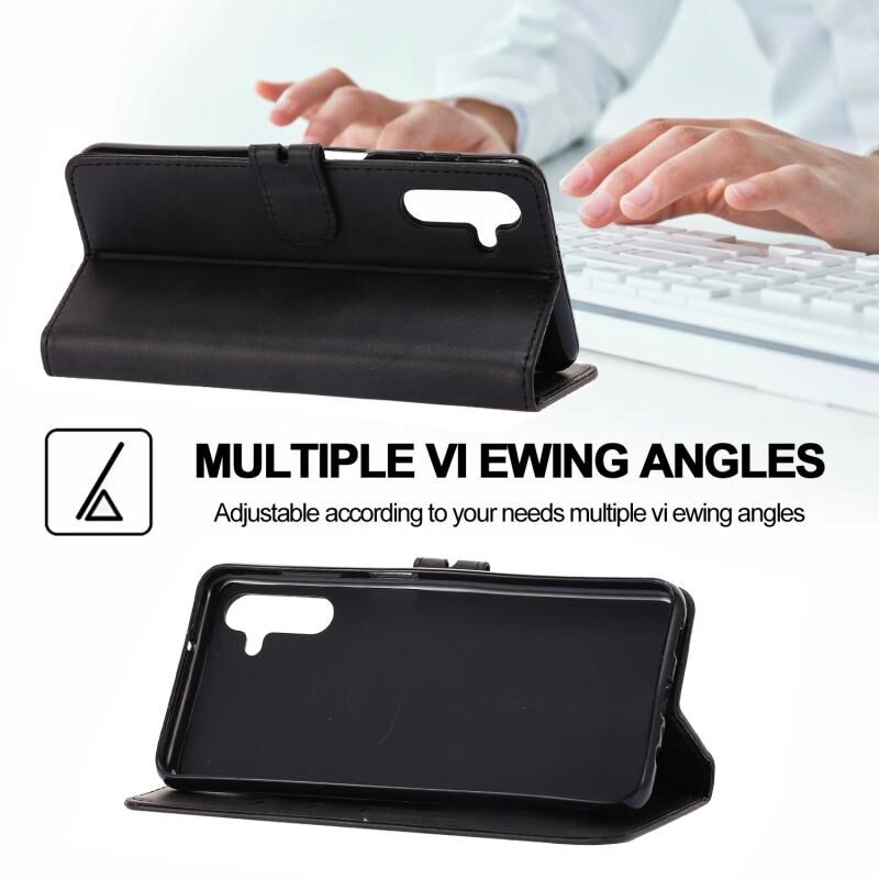 Για το Samsung Galaxy A05s ανάγλυφο Happy Cat μοτίβο Flip δερμάτινη θήκη τηλεφώνου (μαύρο)
