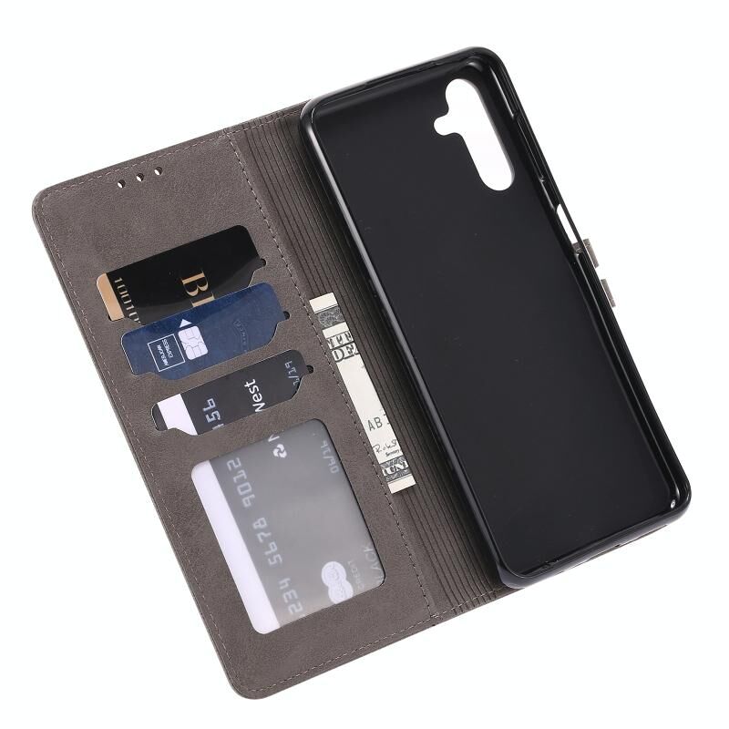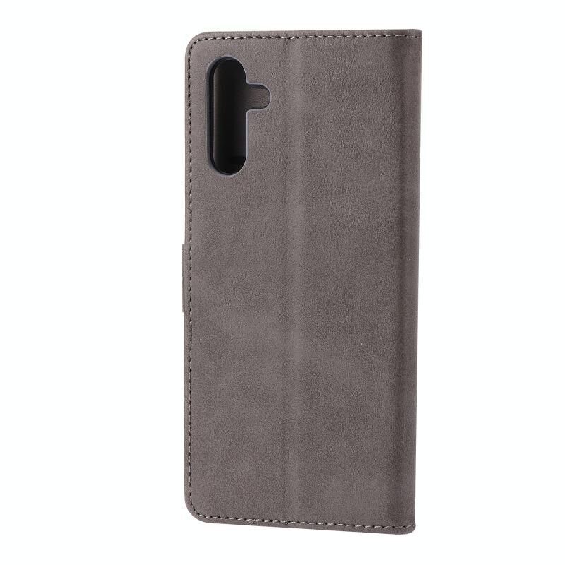 Για Samsung Galaxy A05s ανάγλυφο Happy Cat μοτίβο Flip υπόθεση τηλεφώνου δέρμα (γκρι)