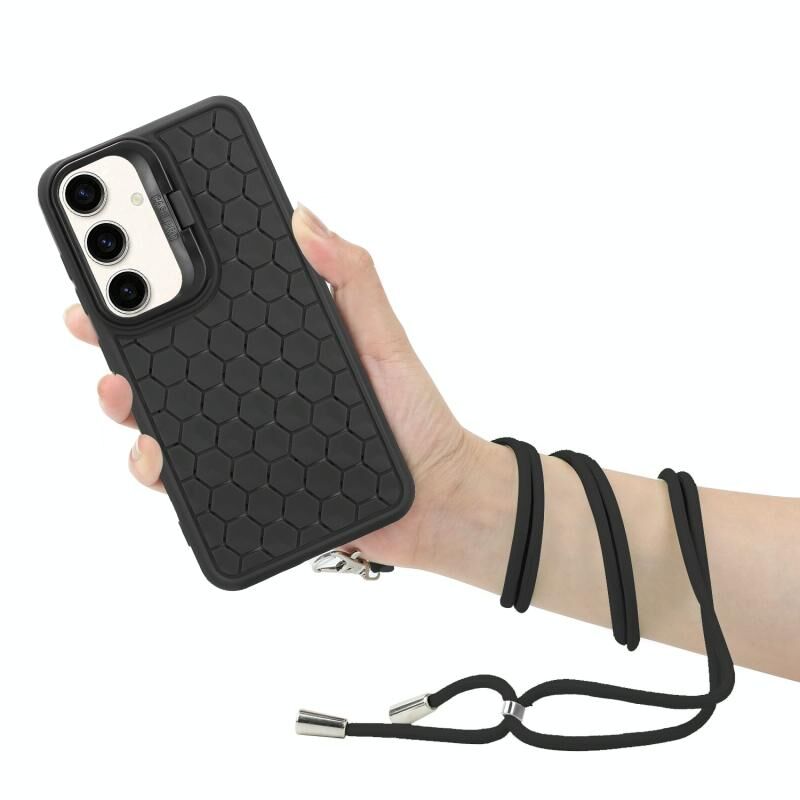 Για Samsung Galaxy A05s ΕΕ κηρήθρα ΕΕ ακτινοβολία κάτοχος TPU τηλέφωνο υπόθεση με κορδόνι (μαύρο)