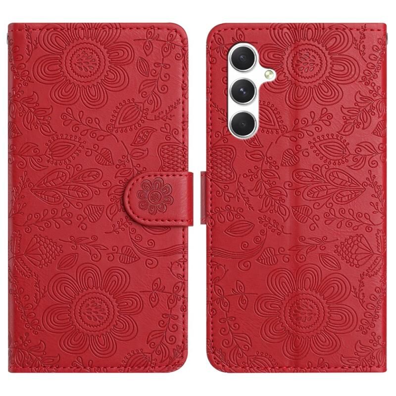 Για Samsung Galaxy A05s Floral ανάγλυφο μοτίβο δερμάτινη θήκη τηλεφώνου (κόκκινο)