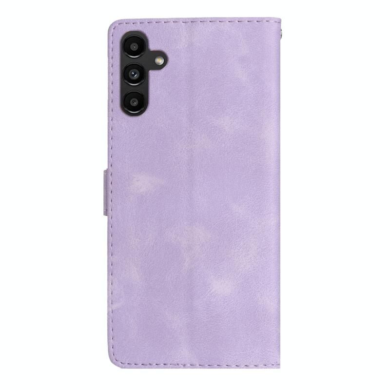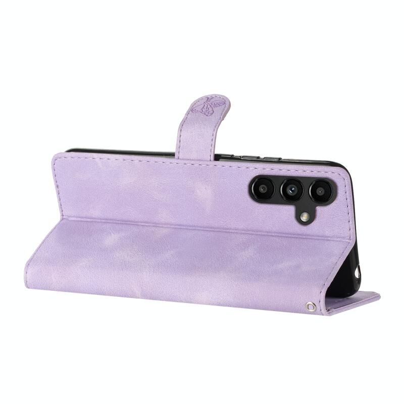 Για Samsung Galaxy A05s λουλούδι πεταλούδα ανάγλυφο μοτίβο δερμάτινη θήκη τηλεφώνου (Μωβ)
